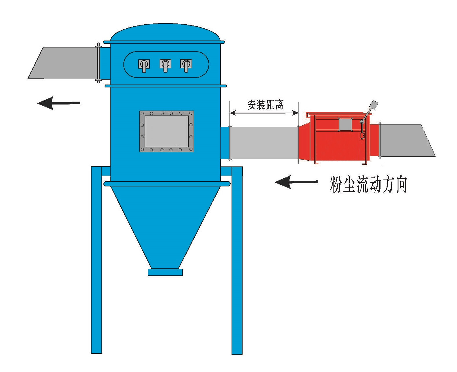 2、隔爆閥與被保護設備進口之間的最小安裝距離有彎頭時,最小安裝距離請與士杰聯(lián)系